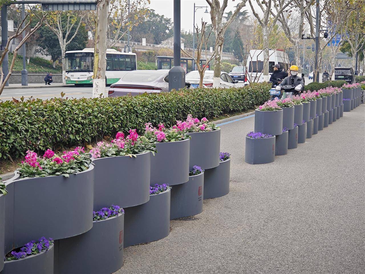 在沿江大路、三阳路沿线,粉紫色的紫罗兰与多色角堇混搭撞色,令东说念主目前一亮,给走过途经的你送去温文。