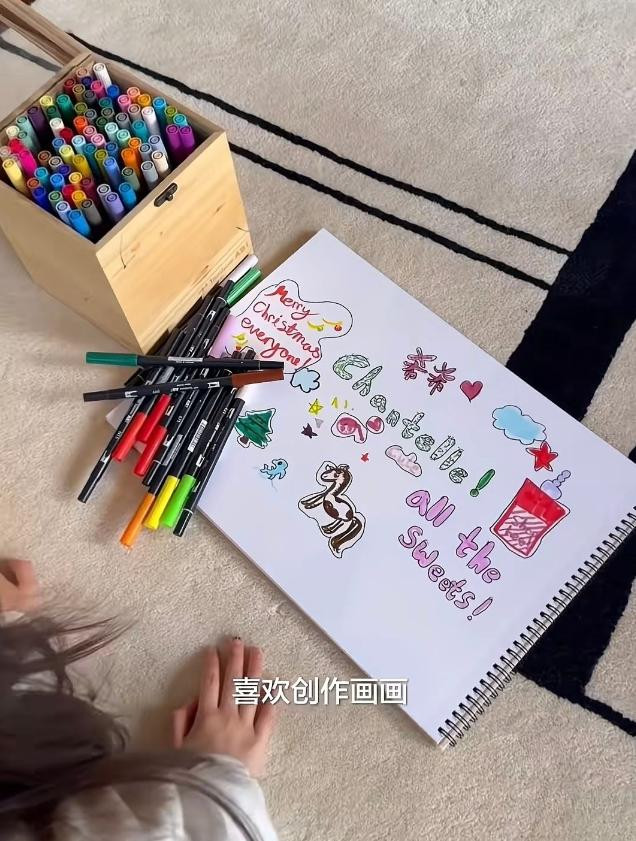 两个女儿长大之后也开动玩起来,根底无谓顾虑,大女儿杰出爱画画,趴在地上就画起来,并且颇有绘图的功底,英翰墨啥的齐写的很好,画的马、圣诞树齐很可以,二女儿则喜安适高也很有思象力,看着评释书就入手拼起来,还看的全英文的书。