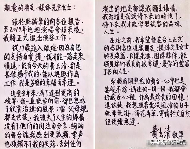 2018年,他亲笔写信,宣布退出演艺圈的筹算。