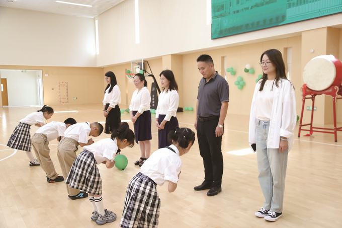 随后,一年事合座老师上台,重生代表向安分行鞠躬礼,合座一年事学生同步起立行拜师礼,尊师重说念的种子悄然播种心田。