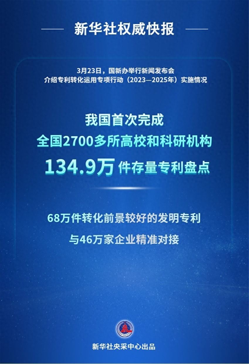3月23日,国新办举行新闻发布会先容专利出动期骗专项行径(2023—2025年)实行情况。国度学问产权局副局长胡文辉先容,我国初度完成了世界2700多所高校和科研机构134.9万件存量专利清点J9九游会体育,筛选出68万件出动远景较好的发明专利J9九游会体育,与46万家企业精确对接。组织各地开展“学问产权工作万里行”等路演手脚1.6万余次,促成专利成交额150多亿元。记者:徐鹏航、宋晨海报制作:徐鹏航新华社国里面出品