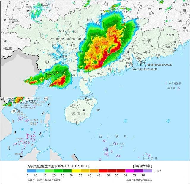 一些方位在24小时内就资格了两场强对流天气历程。先是昨天地午,大片的对流回波扫过广西、广东。